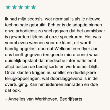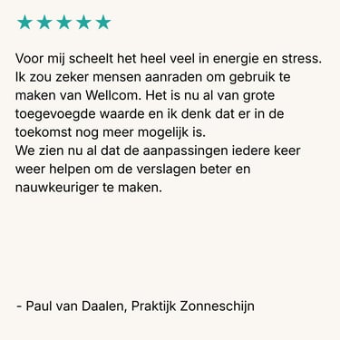 Het Wellcom portaal bundelt alle spraakgestuurde en digitale AI-oplossingen op één centrale plek. Daarmee krijg je niet alleen toegang tot slimme technologie, maar ook tot een breed platform met betrouwbare administratieve ondersteuning. Zo werk je efficiënter, met meer overzicht en altijd in de juiste context.