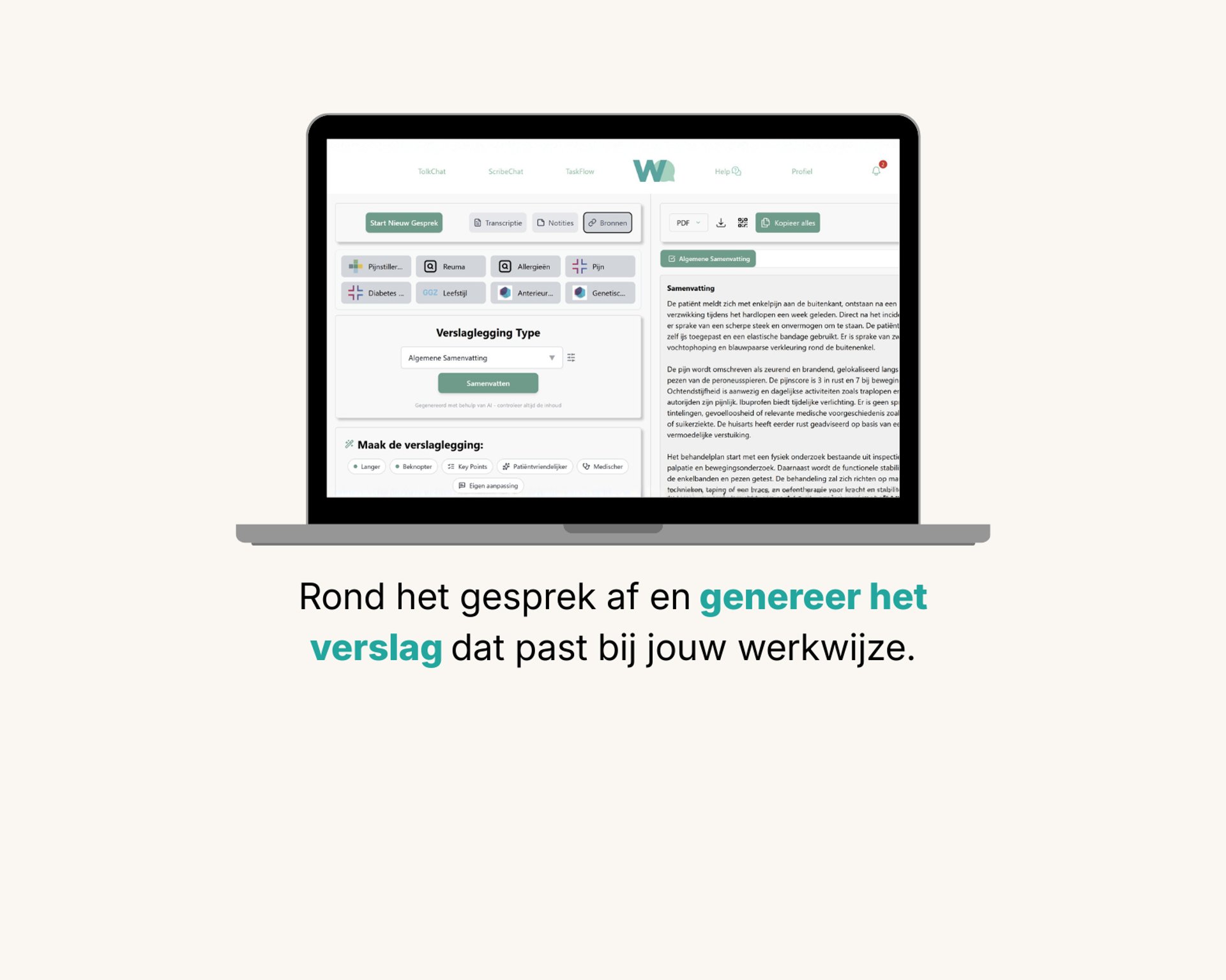 De fysiotherapiepraktijk staat onder druk. Tussen de behandelingen door stapelt de administratie zich op: anamneses uitwerken, voortgangsrapportages schrijven, verwijsbrieven opstellen. Met Wellcom worden sessies automatisch getranscribeerd en omgezet in kant-en-klare verslaglegging, zodat jij je aandacht bij je cliënt kunt houden.