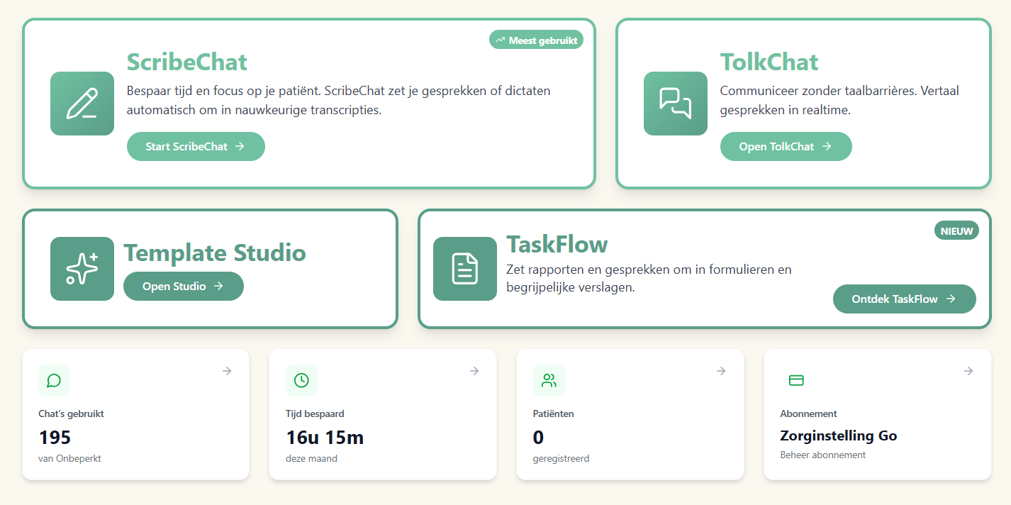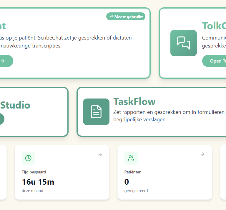 "Het gebruik van de ScribeChat is voor mij een verademing tijdens de revalidatie van mijn schouder. Met de Scribechat dicteer functie kan ik een samenvatting maken voor het dossier en zo mijn werkzaamheden digitaal uitvoeren voor de huisartsenzorg als praktijkverpleegkundige ouderenzorg. Het werkt, prettig en scheelt enorm in tijd. Indien nodig stel ik het iets bij, wat erg eenvoudig is. Ook als mijn schouder weer hersteld is, gaat Scribechat mij veel tijd schelen. Blij mee!"
