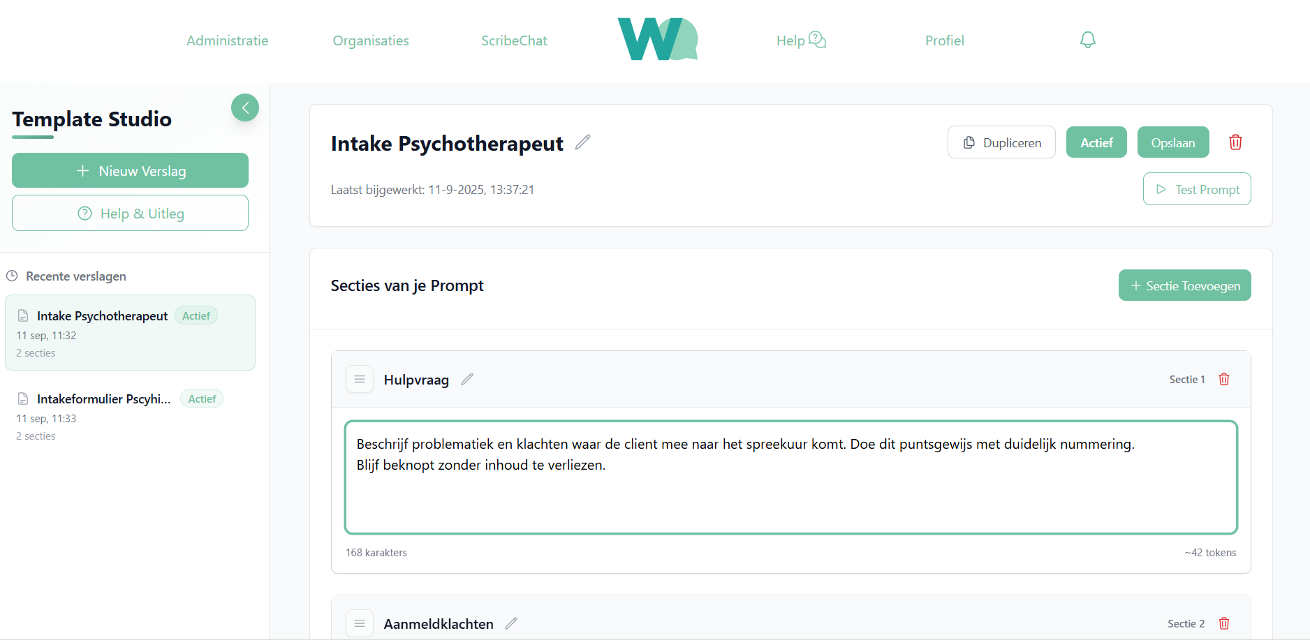 Maak je template kort of uitgebreid, pas hem aan per situatie en dupliceer hem eenvoudig. Voeg waar nodig instructies toe, bijvoorbeeld: “Meer ingaan op de hulpvraag”.